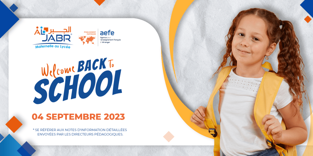 L’école Al Jabr est heureuse d’accueillir tous ses élèves, sur l’ensemble de ses sites, à compter du lundi 04 septembre 2023.