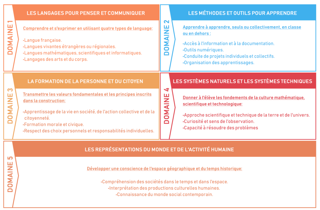 « Le socle commun de connaissances, de compétences et de culture présente ce que tout élève doit savoir et maîtriser à la fin de la scolarité obligatoire. Il rassemble l’ensemble des connaissances, compétences, valeurs et attitudes nécessaires pour réussir sa scolarité, sa vie d’individu et de futur citoyen » Eduscol